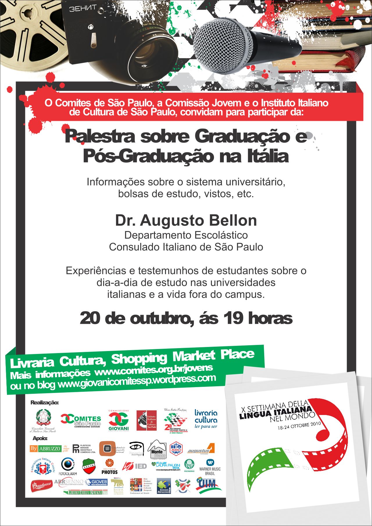 • Palestra sobre Graduação e Pós-Graduação na Itália (X Settimana della lingua italiana nel mondo)