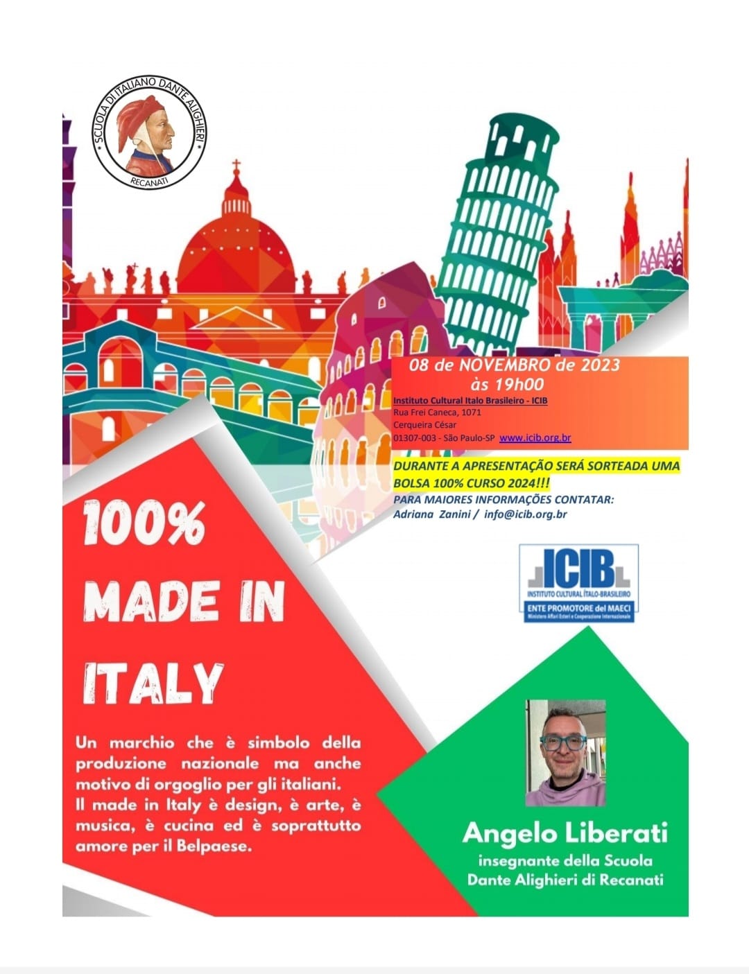 Evento Presencial Gratuito Made in Italy, sorteio de bolsa de estudo de curso na Itália!